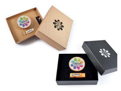 The ideal promotional gift for your staff members or customers as these sets offer multiple branding and personalisation options: Your artwork will be printed in full colour onto these environmentally friendly bamboo Bluetooth speakers (A2DP Bluetooth; 3W output; FM radio and hands free function; Wireless connection to your smartphone, tablet or Bluetooth device with the option to plug in the included 3.5 audio jack into the speaker; Easy charging with included USB cable; Enjoy music up to 8 hours and wirelessly up to 10 metres; Features Micro SD card reader) as well as onto the 4GB bamboo flash drives (USB 2.0 chips; Will record and play HD & Full HD video from 720p to 1080p/1080i). Furthermore the gift box itself can also be branded with your company's details and/or message.