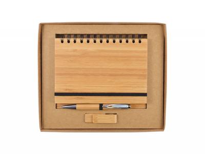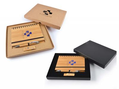 The ideal staff gifts can contribute to building a sense of unity and team spirit. It fosters a positive atmosphere in the workplace, promoting cooperation and collaboration among team members. Your artwork will be printed or engraved onto these environmentally friendly bamboo spiral notebooks (135 x 180mm (LxH) - 70 leaves, 140 spiral bound recycled lined pages (70GSM); Includes bamboo/silver push button ballpoint pen; Elastic closure; Recycled symbol printed on each page) as well as onto the 4GB bamboo flash drives (USB 2.0 chips; Will record and play HD & Full HD video from 720p to 1080p/1080i). Furthermore the gift box itself can also be branded with your company's details and/or message.