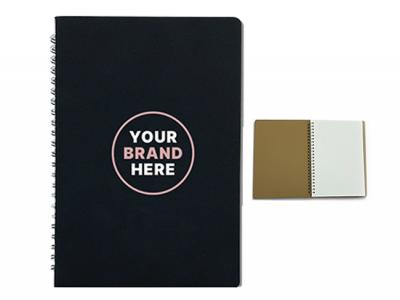 These custom printed A5 spiral journals feature a PU cover and come with 80 lined pages of 80 GSM paper.