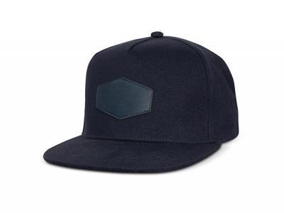These premium structured five panel caps are manufactured from heavy brushed cotton and have a matching leather-look hexagonal patch that provides a very affordable branding option here. Other features include a fashionable flat peak, embroidered eyelets, a sweat band and an adjustable snap back closure that allows one size to fit most people.