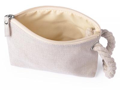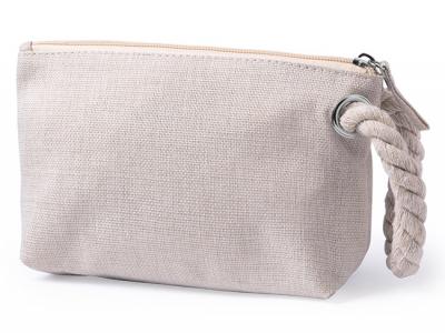 These custom printed small bags are made from a combination of natural cotton and polyester and feature a zipper in matching colour. The eye-catcher here the weaved string which goes through the metal eyelet and gives these pouches a nautical look.