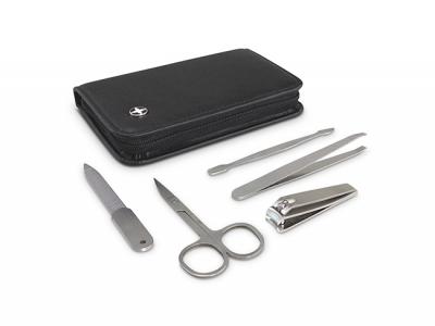 Look no further than the Swiss Peak Manicure Set for effortless nail care! These luxury and custom branded five-piece sets include nail clippers, a nail file, nail scissors, tweezers and a cuticle pusher in a premium PU case with a matching black zipper. The instruments are manufactured from high quality brushed stainless steel.