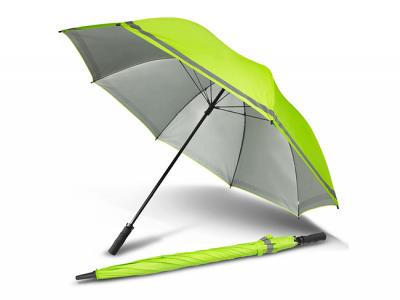These custom printed highly visible PEROS Eagle branded Umbrellas are the ideal choice for safety conscious households and workplaces. These custom umbrellas have a large high-vis yellow canopy for maximum day-time visibility and a reflective edge that stands out like a beacon at night. The eight-panel nylon canopy is supported by 75cm fibreglass ribs and is wind-proof. Other features include a fibreglass shaft, a Velcro tie, a soft-touch hand grip and a silver lining that offers UPF50+ sun protection ensuring Eagle is an outstanding choice for complete protection from the elements.