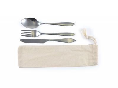 Promotional Stainless Steel Cutlery Sets In Calico Pouch