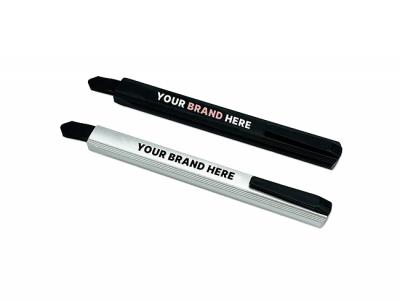 Engraving your logo on the promotional slim retractable utility knives is usually done by Laser engraving, where the laser removes a thin layer of the metal surface. Your logo becomes part of the slim retractable utility knives and is impossible to remove. Sometimes the engraved effect will be a different metal colour to the outside metal coating of your product. We can also engrave wood or plastic. Engraving is usually a more expensive branding method.