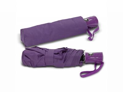Stand out from the crowd with these custom printed PEROS Dew Drop tri-folding umbrellas: They have an eight-panel wind-proof pongee canopy with 53cm steel and fibreglass ribs. Other features include automatic opening and closing, a steel shaft, a Velcro tie and a matching pongee sleeve. The distinctive plastic handle has a raindrop finish and a woven carry loop.