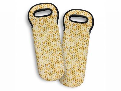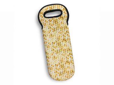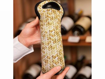 Convenient single bottle wine cooler bags with smart black stitched reinforcing around the carry handles and opening. It features a stylish, natural woven pattern that is suitable for overprinting. Manufactured from 5mm neoprene which has excellent insulation properties to keep wine cool for longer while in transit.