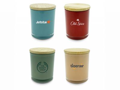 Incorporate branded coloured bamboo lid candles (small) in your next promotional campaign