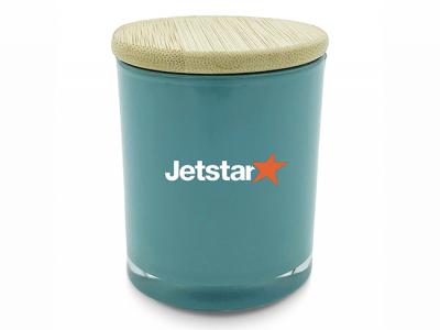 We can have your logo branded on these corporate Coloured Bamboo Lid Candles (Small) in 1 Colour Pad Print. A setup fee of US$86.00 will apply to make the film.