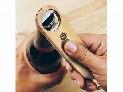 Incorporate branded rubberwood blade bottle openers in your next promotional campaign
