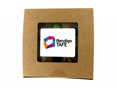 Incorporate branded cafe style cookies in eco kraft window box (2x 50g) in your next promotional campaign