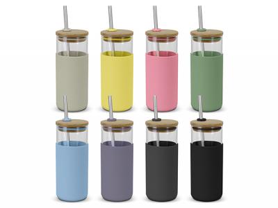Personalize your glass tumblers with straw and bamboo lid (450ml) or custom design drinkware for your marketing campaign.