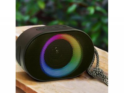 These powerful 7W outdoor Bluetooth speakers are compatible with all mobile devices that support Bluetooth. They are water-resistant, making them well suited for outdoor use and can also be used with an audio cable. These compact speakers are perfect for music on the go, featuring an ambient light function with ten light display settings, a built-in microphone for phone calls, a safety alarm, and a woven carry handle. Music playback can be controlled directly from the speaker. Playing time is up to five and a half hours and the speaker is easily recharged from a laptop, a power bank or a USB mains adapter.