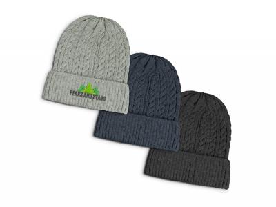 Incorporate branded chunky cable knit beanies in your next promotional campaign