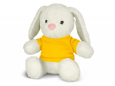 Get your artwork printed onto the t-shirts of these soft promotional rabbit plush toys which have embroidered eyes and are wearing a polyester t-shirt. Out of 11 different shirt colours, you can choose the one which matches your corporate colours the best. Plush animals provide a cute and cuddly branding option and are great for brand recognition and spreading goodwill.