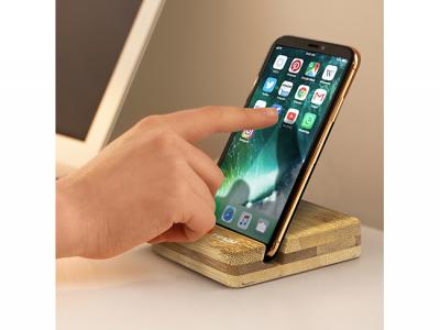 Incorporate branded eco bamboo mobile phone stands in your next promotional campaign