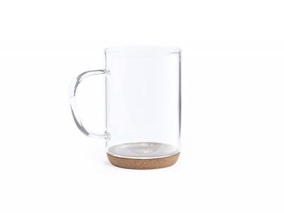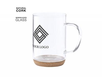 Incorporate branded borosilicate glass mugs with cork base (450ml) in your next promotional campaign