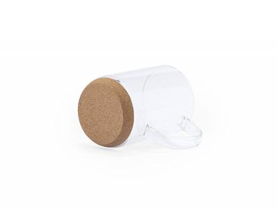 Personalize your borosilicate glass mugs with cork base (450ml) or custom design glass travel cups for your marketing campaign.