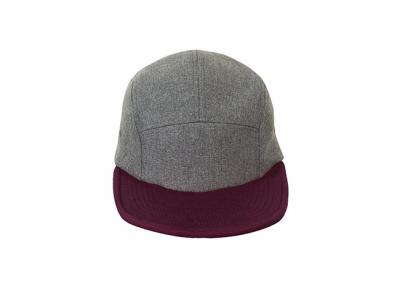 These stylish 5 panel caps feature a solid coloured flat cotton peak and a bi coloured top made from Polyester. They also come with a plastic buckle on the back to adjust the size.