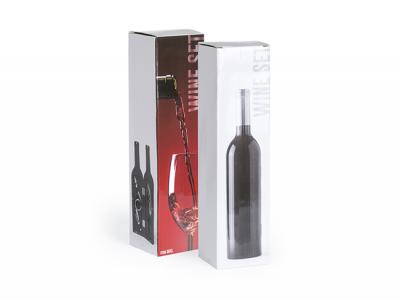 Get your logo printed onto these handy wine sets: A collection of 5 stainless steel wine tools presented in a bottle shaped box. A promotional item every wine lover will love! The sets include a corkscrew, opener and cutter, stopper and a drip stop and will be presented in individual boxes.