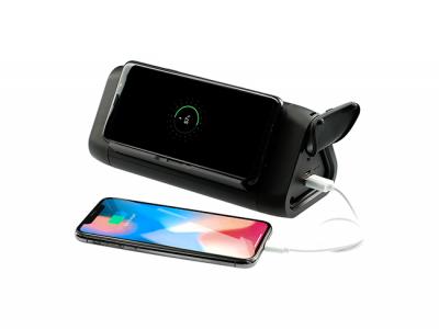 These custom printed speakers can also be used to charge the mobile device with the built in USB Output or with the built in wireless charging powerbank. The phone must be compatible with wireless charging. Two devices can be charged at the same time while enjoying your favorite music.