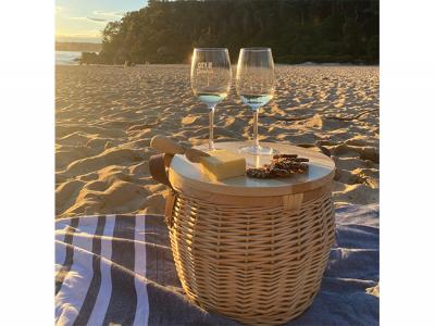 The perfect companion for any picnic or party: This exquisite basket includes an internal insulated lining with a zippered cover. The timber board is made from lacquered pine wood and the basket is supplied with an one shoulder strap.