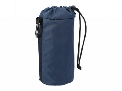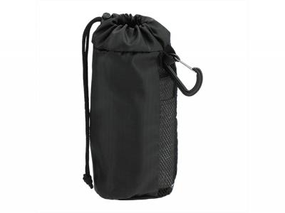 The custom printed rip stop pouch features a wide opening with shock cord to easily take the bags in and out. It also has a removable carabiner clip and mesh side panel.