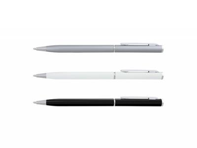 These twist-action aluminium ball pens feature a narrow, elegant design. These custom pens also come with 600m of blue Dokumental ink and a tungsten carbide ball for improved writing quality.