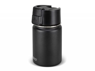 The timeless Swiss Peak design is evident in these smart 350ml double wall, vacuum insulated stainless steel cups which feature a smart powder coated finish. These custom branded cups will keep drinks hot or cold for hours and feature a secure screw-on lid with a push-button activated flip closure which is spring loaded for smooth, effortless operation.