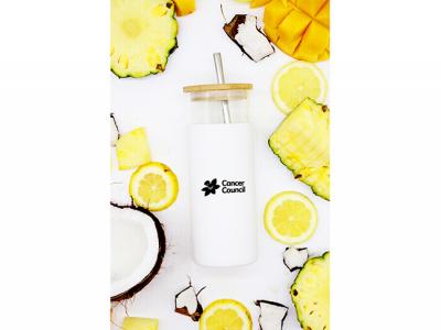 These custom glass tumblers are a must have for your summer smoothie on the go! They are made of BPA free, single-walled Borosilicate glass with a silicone sleeve for a comfortable grip. They also feature a removable stainless steel straw and a tight seal bamboo lid to ensure no spillage. With a 500ml capacity, take it with you on the way to work, the beach or out by the pool, filled with your morning iced coffee ready to jump into your day. These promotional glass tumblers are available in 7 beautiful colors to ensure you are able to match your glassware to your 'fit and always be seen in style.