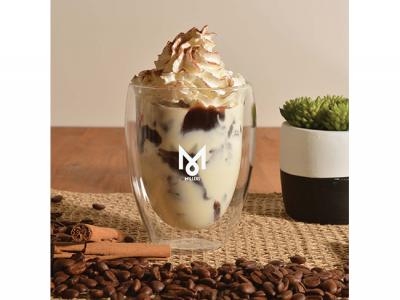 Personalize your borosilicate glass cups with optional bamboo lid (350ml) or custom design glass reusable coffee cups for your marketing campaign.