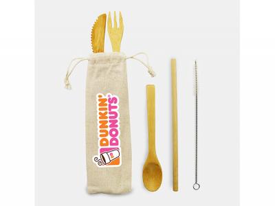 Custom brand these eco bamboo cutlery sets with straw or one of our best-selling promotional picnic gifts»cutlery sets with your company logo!