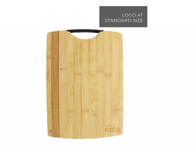Custom brand these bibi bamboo cutting board (220mm w x 280mm h x 13mm d) or one of our best-selling promotional chopping boards with your company logo!