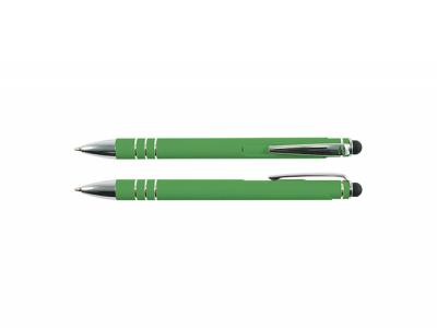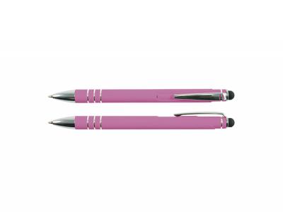 These push button ballpoint pens come with black ink and feature a black stylus as well as an aluminum soft feel barrel. They are available in 11 vibrant colours with a chrome clip and tip & highlight rings on the barrel.