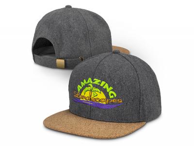 These premium and environmentally friendly six panel caps are manufactured from felt and feature a fashionable cork flat peak. They also come with embroidered eyelets and a brass buckle at the back that allows one size to fit most people.