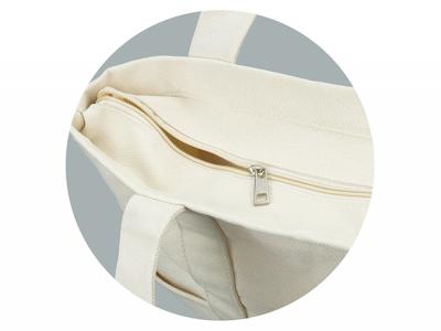 Carry your brand with durable style using our Cotton Canvas Tote Bags. They're more than bags; they're the canvas for your brand's creativity. These custom printed classic canvas tote bags are manufactured from 50% natural 450gsm cotton and 50% Polyester Canvas. They come with a metal zip closure that is concealed and can be hidden to ensure your belongings are safe. Other features include side pockets and front and back pockets for optimum storage.