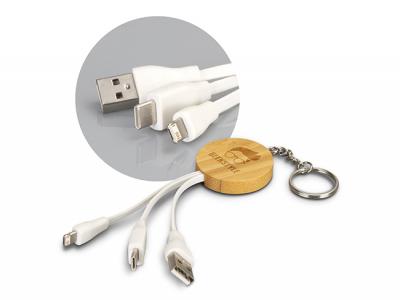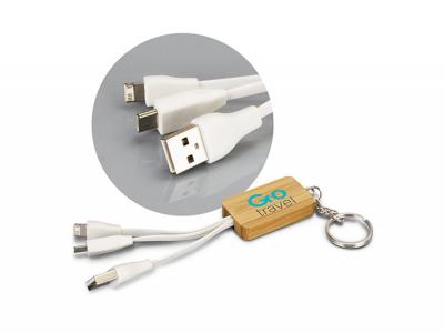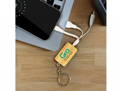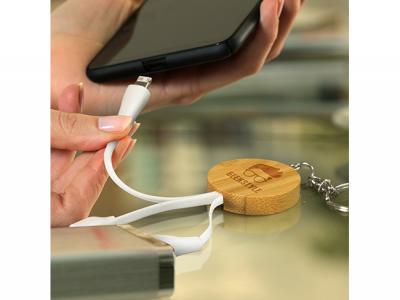 Incorporate branded bamboo charging cable keyrings in your next promotional campaign