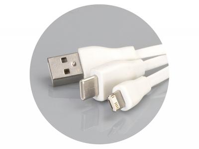 These Printed Phone Accessories are made for the use with phones, tablets, cameras, GPS etc. They offer three different connectors in one compact bamboo unit: An USB, Type-C, and a Lightening that can be flipped over to be a Micro-B.