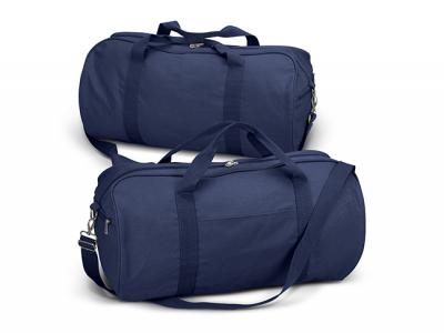 These modern roll duffel bags are manufactured from 450gsm heavy cotton canvas. They feature webbing carry handles, a padded woven shoulder strap that is removable, and an external side pocket making it the perfect weekend getaway bag.