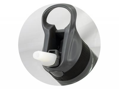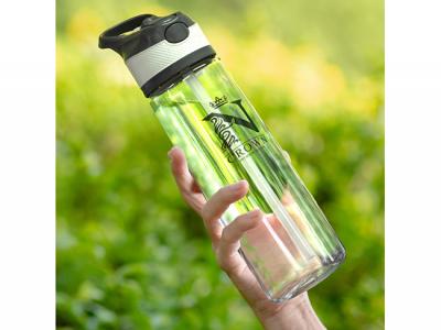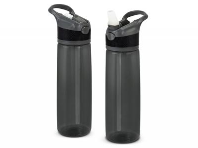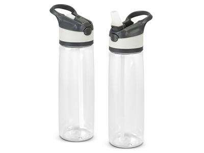 Promotional 800ml water bottles with a secure screw-on lid and carry handle. Manufactured from polyethylene which is durable and lasting. Includes a push button release for the flip-out drinking valve with a straw. This product is not dishwasher safe and handwashing is recommended.
