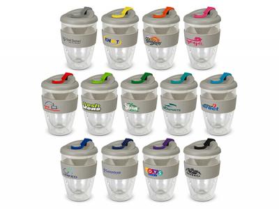 Print your logo onto these custom printed daya double walled glass coffee cups (350ml) or one of our other innovative glass reusable coffee cups and use them in your next marketing campaign as a unique giveaway item.
