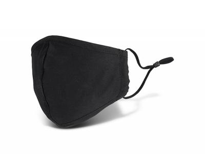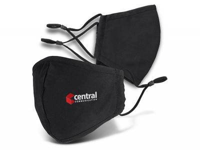 These premium face masks feature a nose wire to provide a more secure, comfortable fit and have matching black ear loops with adjustable silicone toggles to ensure one size will fit most people. These masks have seams stitched into the front panel to create more structure, keeping the material of the mask away from the nose and mouth. They are manufactured from a blend of cotton and polyester.