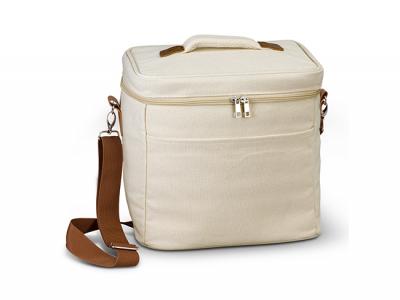These impressive 19L Promotional Cooler Bags have a PE foam insulation encased in a PEVA inner liner. The outer construction is natural 100% 450GSM cotton canvas with stunning leather-look PU accents. These promotional cooler bags also come with a woven carry handle on the top and a woven shoulder strap which is adjustable and removable via metal clips. Other features include a zippered top closure, piping details to hold the structure and a large front slip pocket.