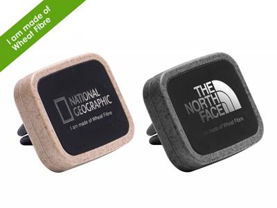 Incorporate branded eco wheat fibre magnetic car phone holders in your next promotional campaign