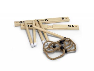 This classic game of Ring Toss is ideal for family gatherings, a day at the beach or as a great way to entertain guests at home: The game features six rope rings, five wooden pegs with screws and two base parts. The pegs and base are manufactured from Pine Wood and the rope rings are produced from Hemp.