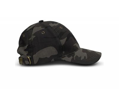 These premium 6-panel camouflage caps feature a trendy curved peak. They are manufactured from 100% cotton and have a metal buckle for easy closure. These custom brande caps also feature metal eyelets and come in one size that fits most people.