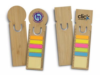 Personalize your sticky notes ruler bookmarks (bamboo) or custom design branded stationery for your marketing campaign.