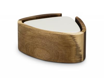 This is a practical set of six ceramic coasters that are designed to resemble river stones from New Zealand. Each coaster has a unique shade of neutral grey and taupe, adding an element of variety to the set. The coasters come with a compact Acacia wood holder for storage. They are packaged in a natural gift box with a branded black sleeve, making them a perfect gift for any occasion.