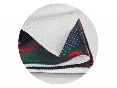 This custom sports towel is compact and vivid, measuring 850mm x 400mm, and features a striking full-color sublimation print that extends from edge to edge. The custom towel has a soft surface made of 190gsm polyester crystal fleece and an absorbent 230gsm cotton terry towel backing. Additionally, the edges of the sports towel are overlocked, providing extra durability.