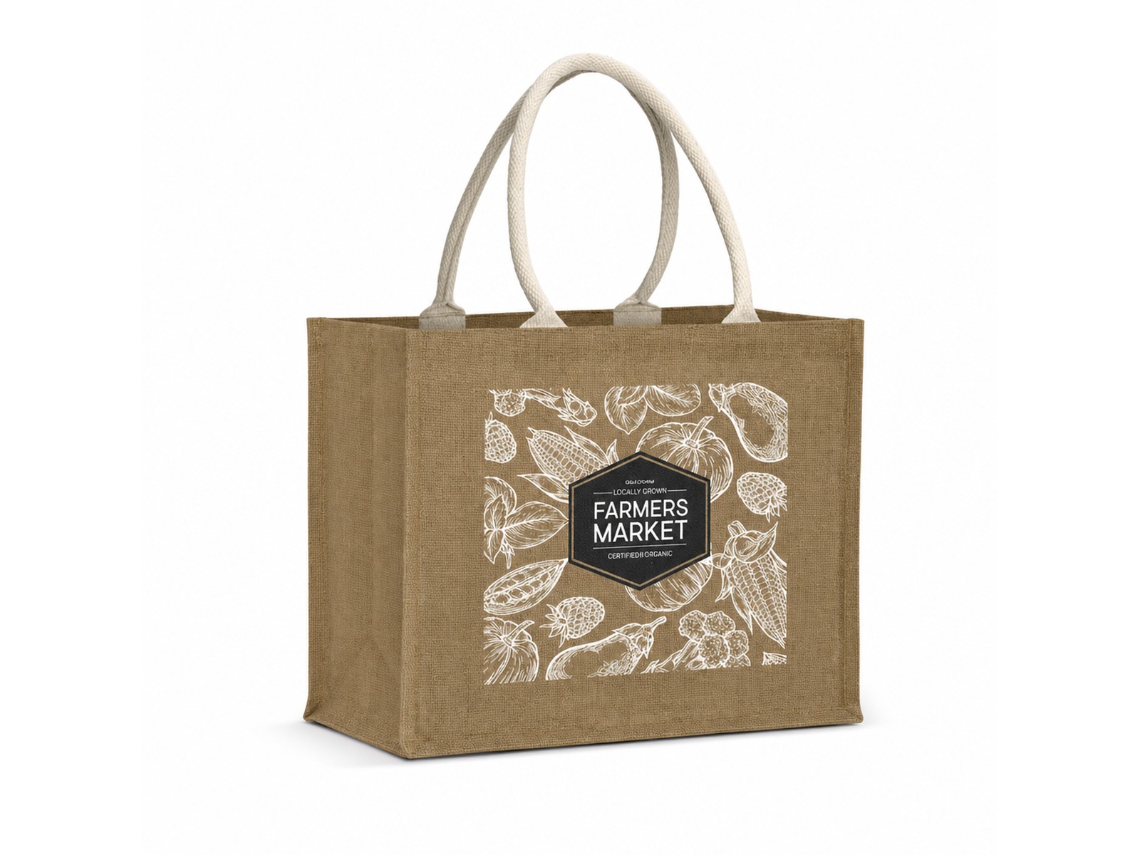Print your logo onto these custom printed large eco starch tote bags with jute handles (29l) or one of our other innovative tote bags and use them in your next marketing campaign as a unique giveaway item.